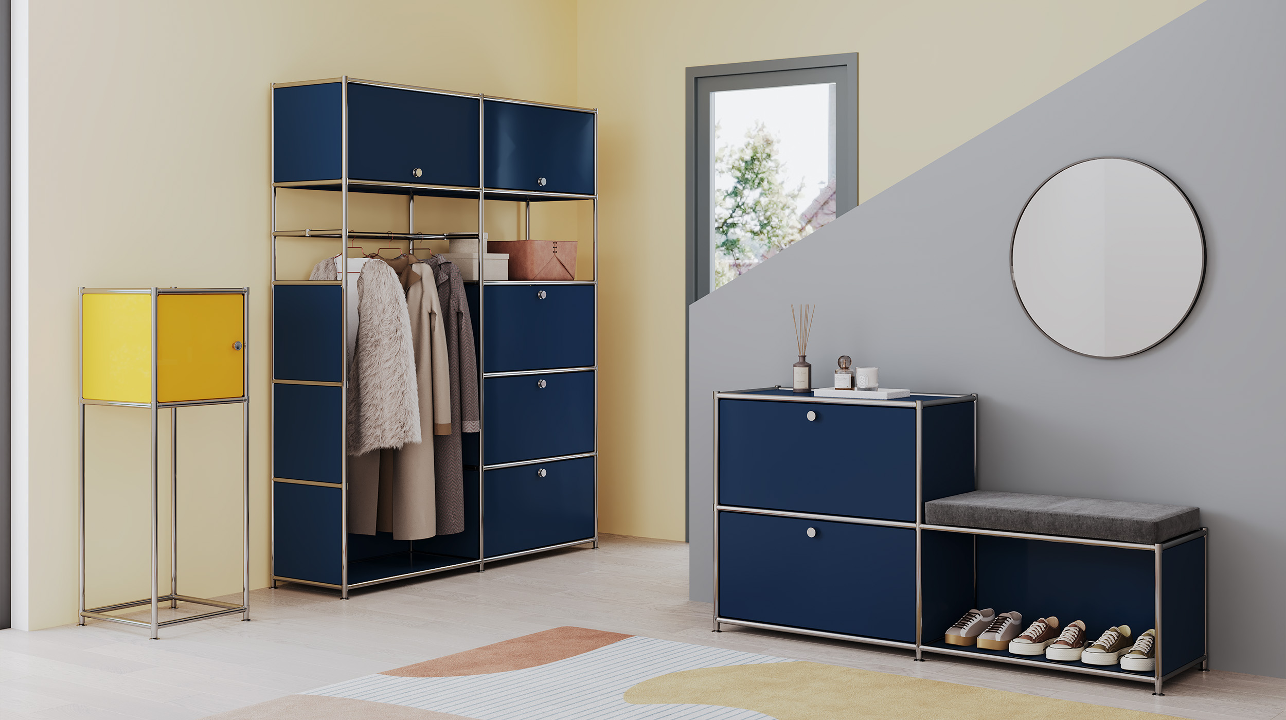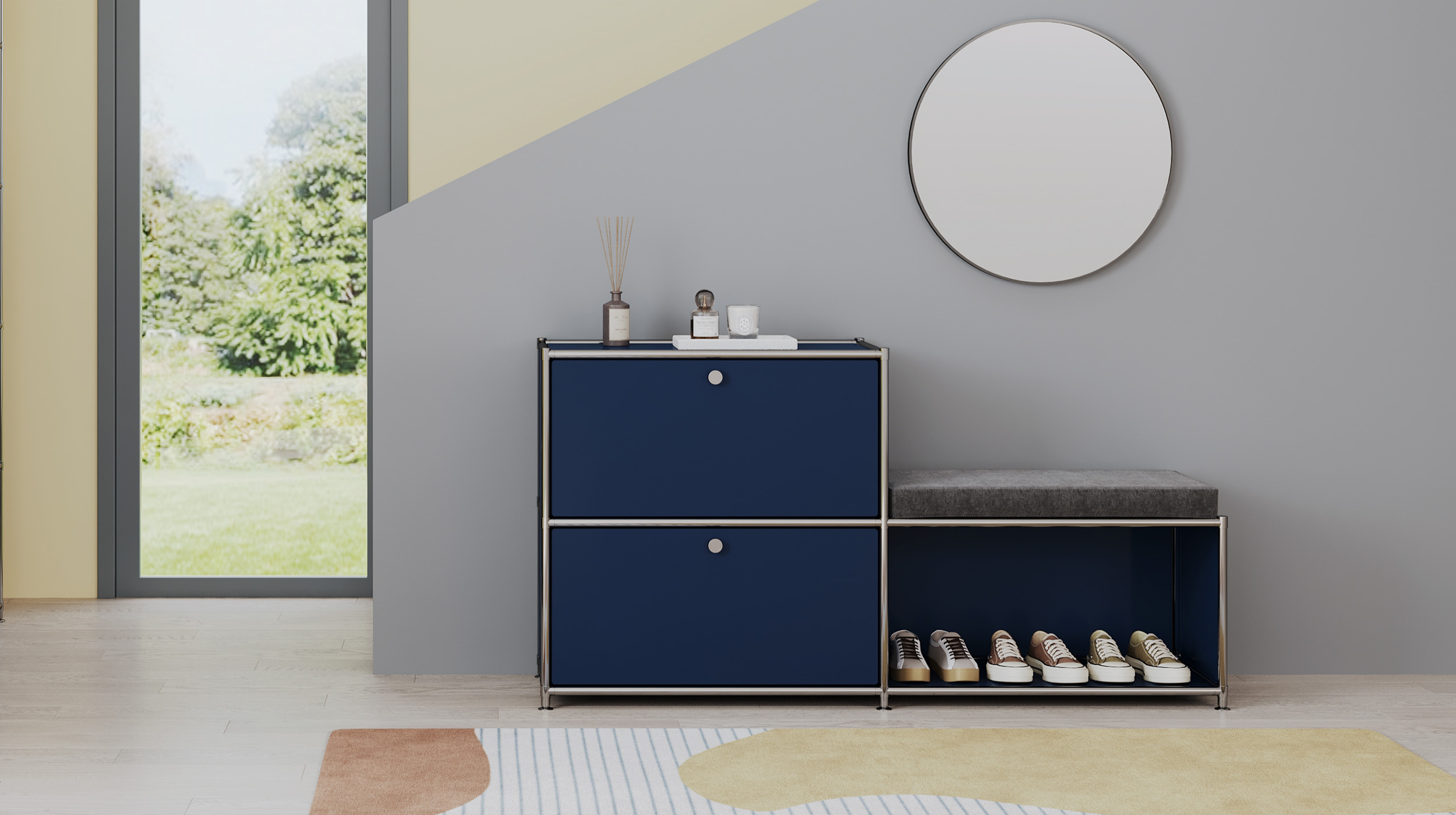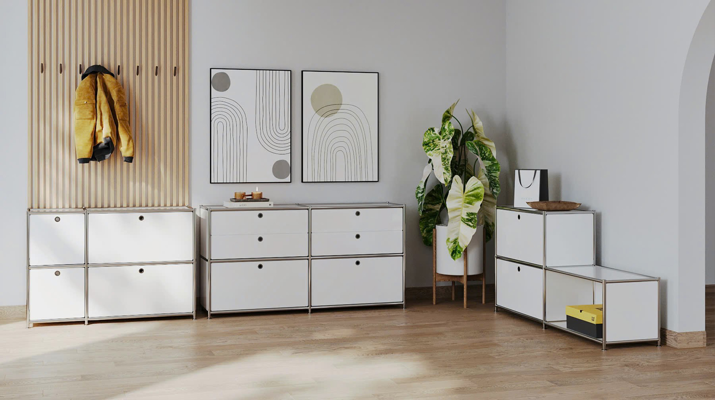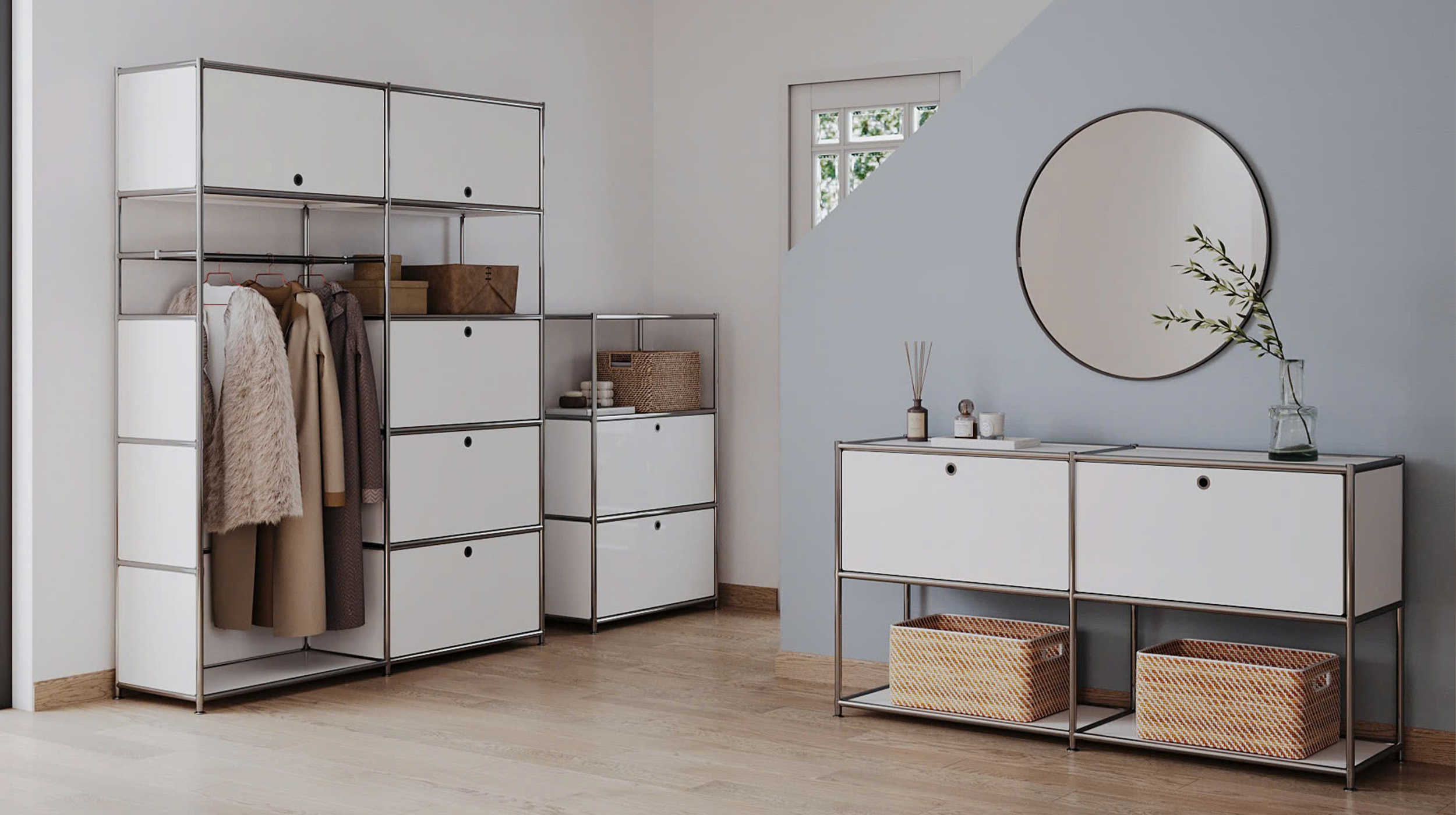 From a slim lowboard for your shoe collection to a wall-mounted coat rack: this modular system allows for maximum organisation in a minimal amount of space – perfect for everything that needs to be within easy reach when leaving the home.