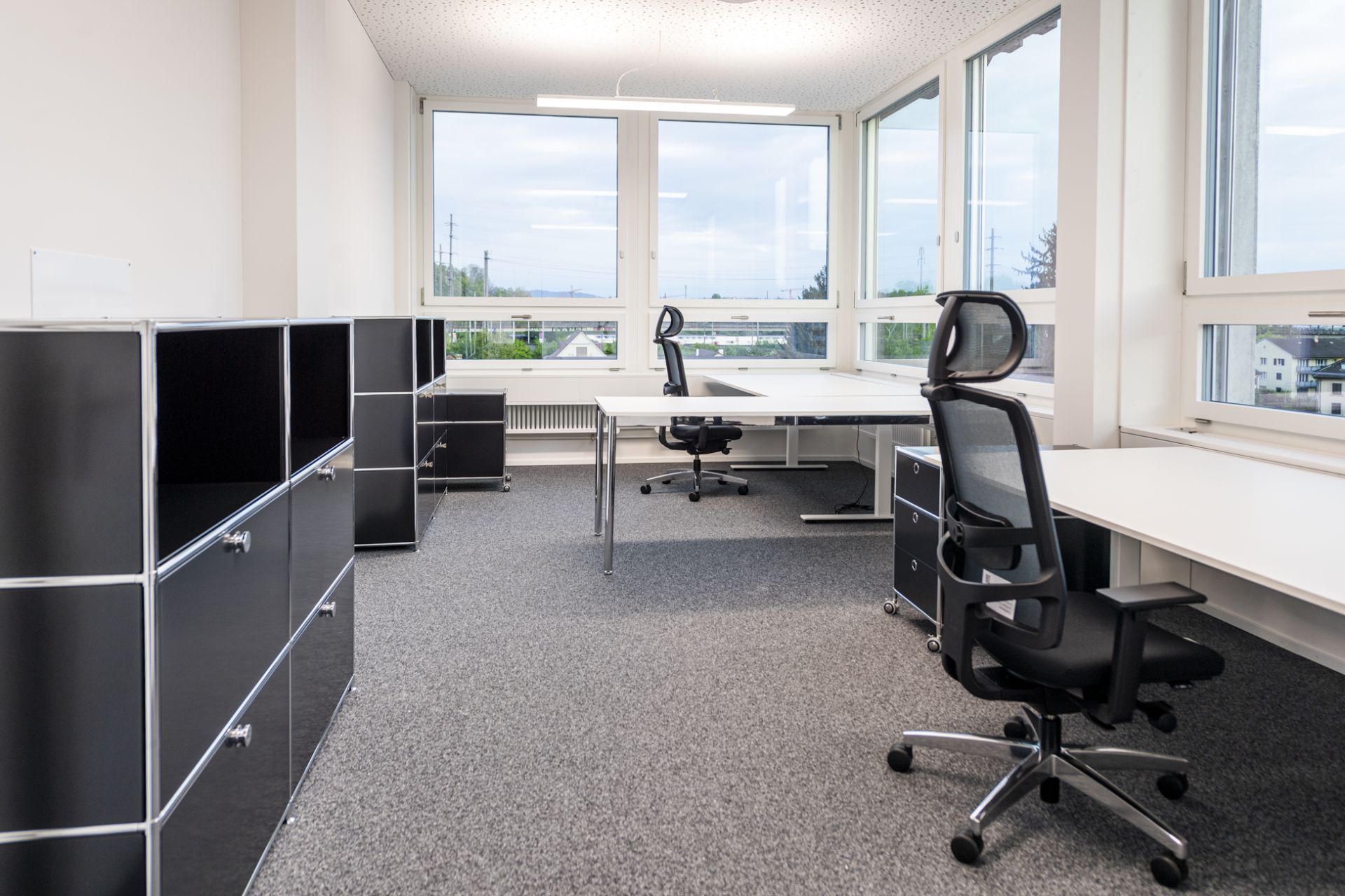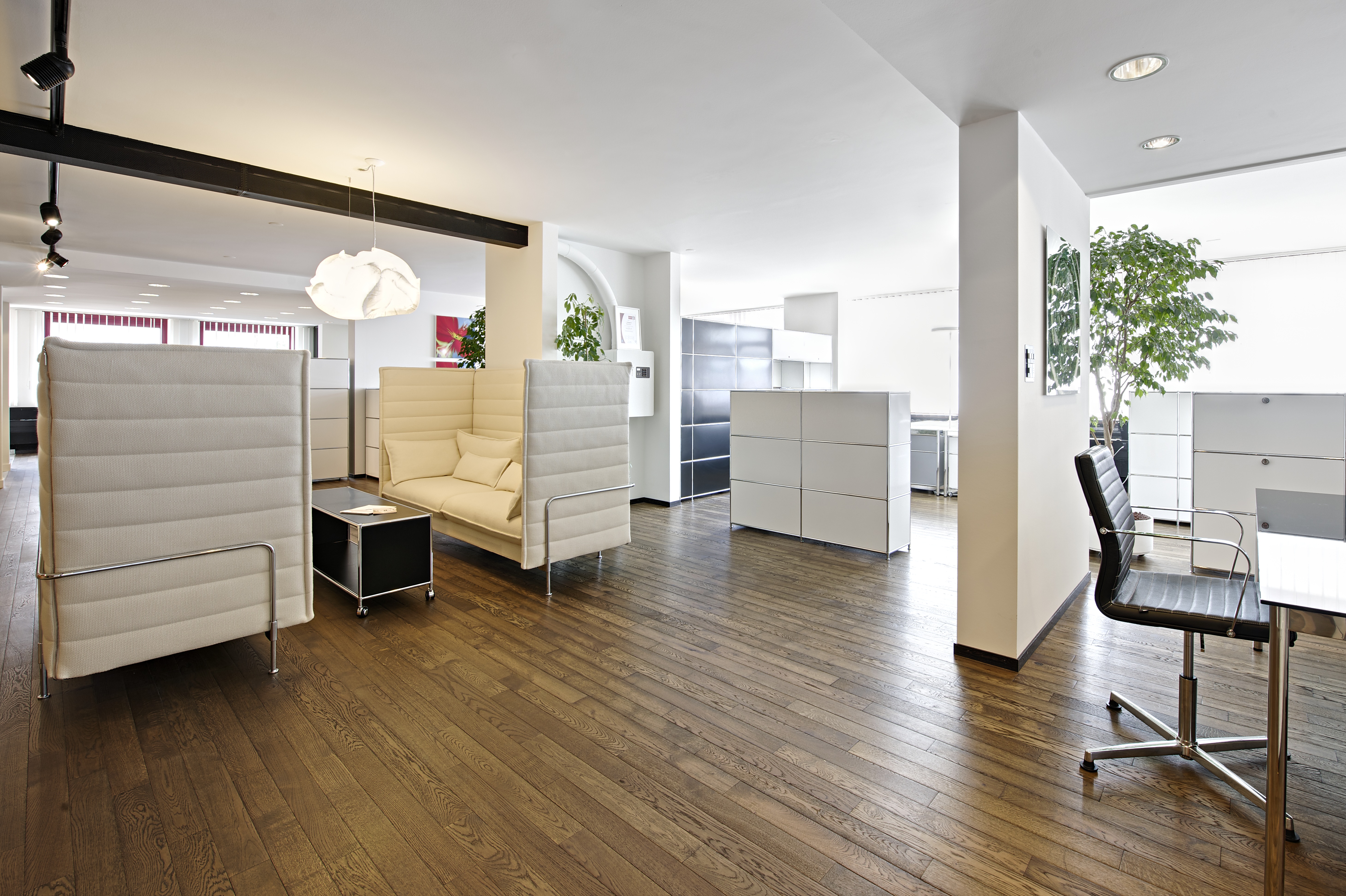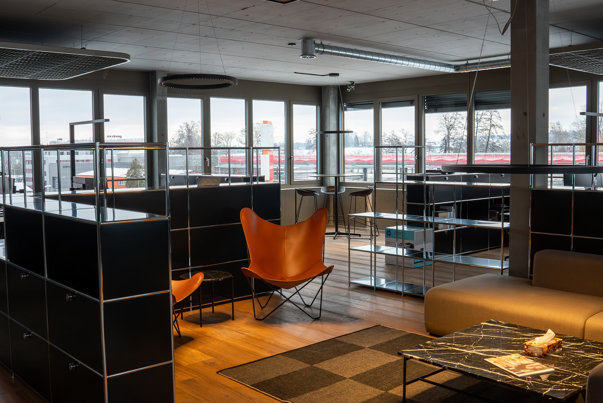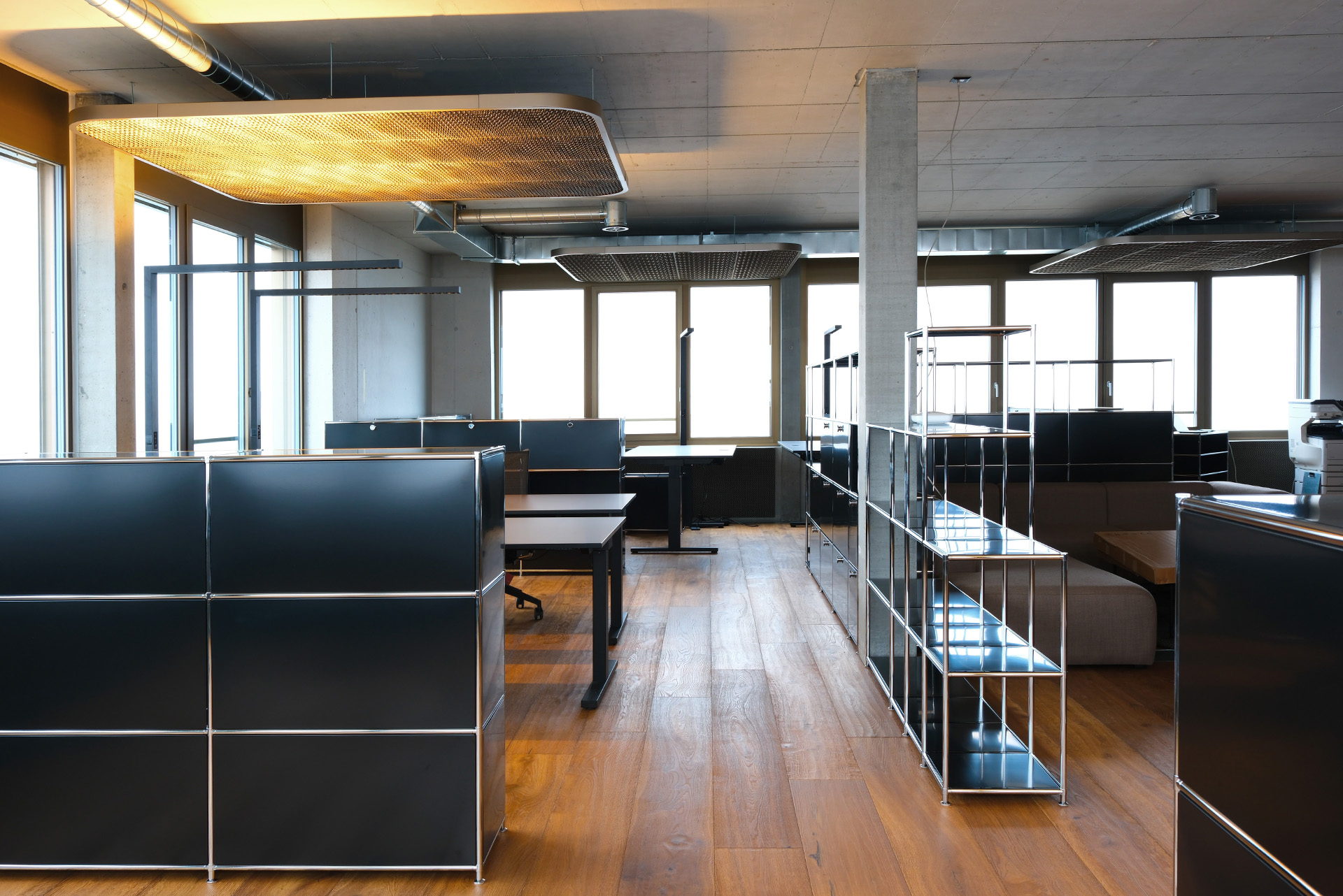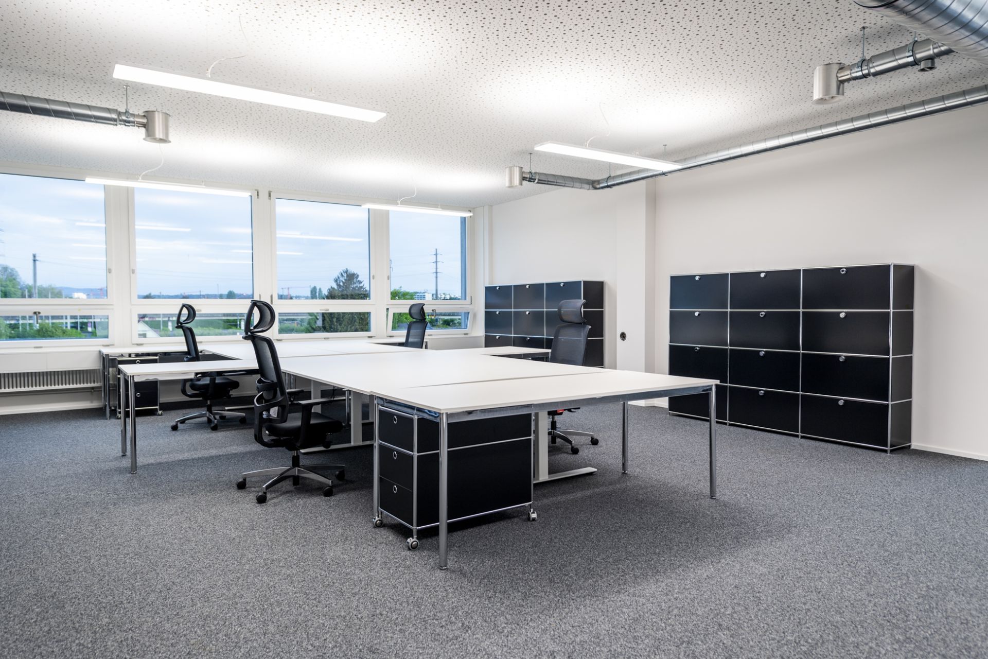The project comprised twelve ergonomic workstations with height-adjustable desks, office containers and sideboards. Several dividing shelves provide structure and a clear room layout. The furnishings were complemented by a modern meeting room with a sideboard, a spacious table and chairs, an inviting dining area and two stylish lounge areas with a sofa and coffee table.
