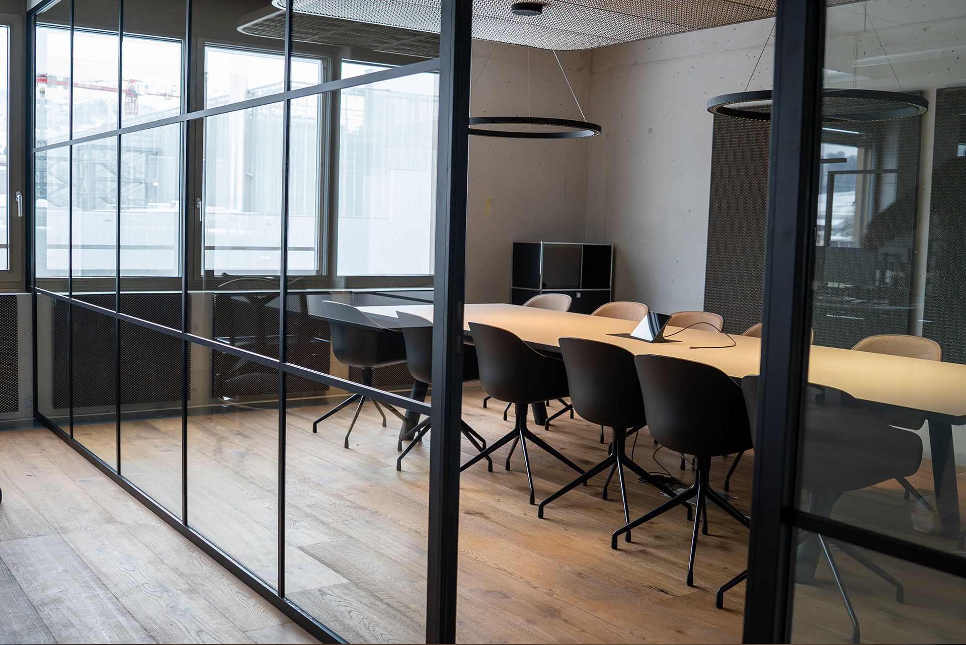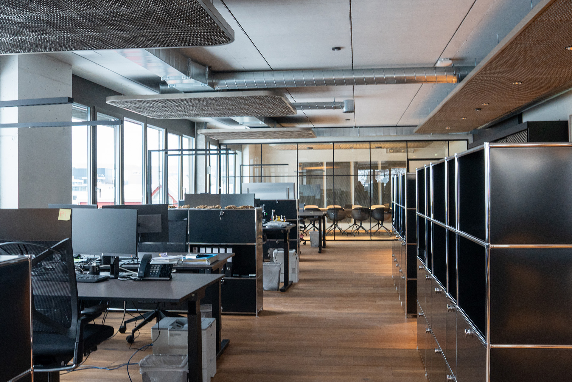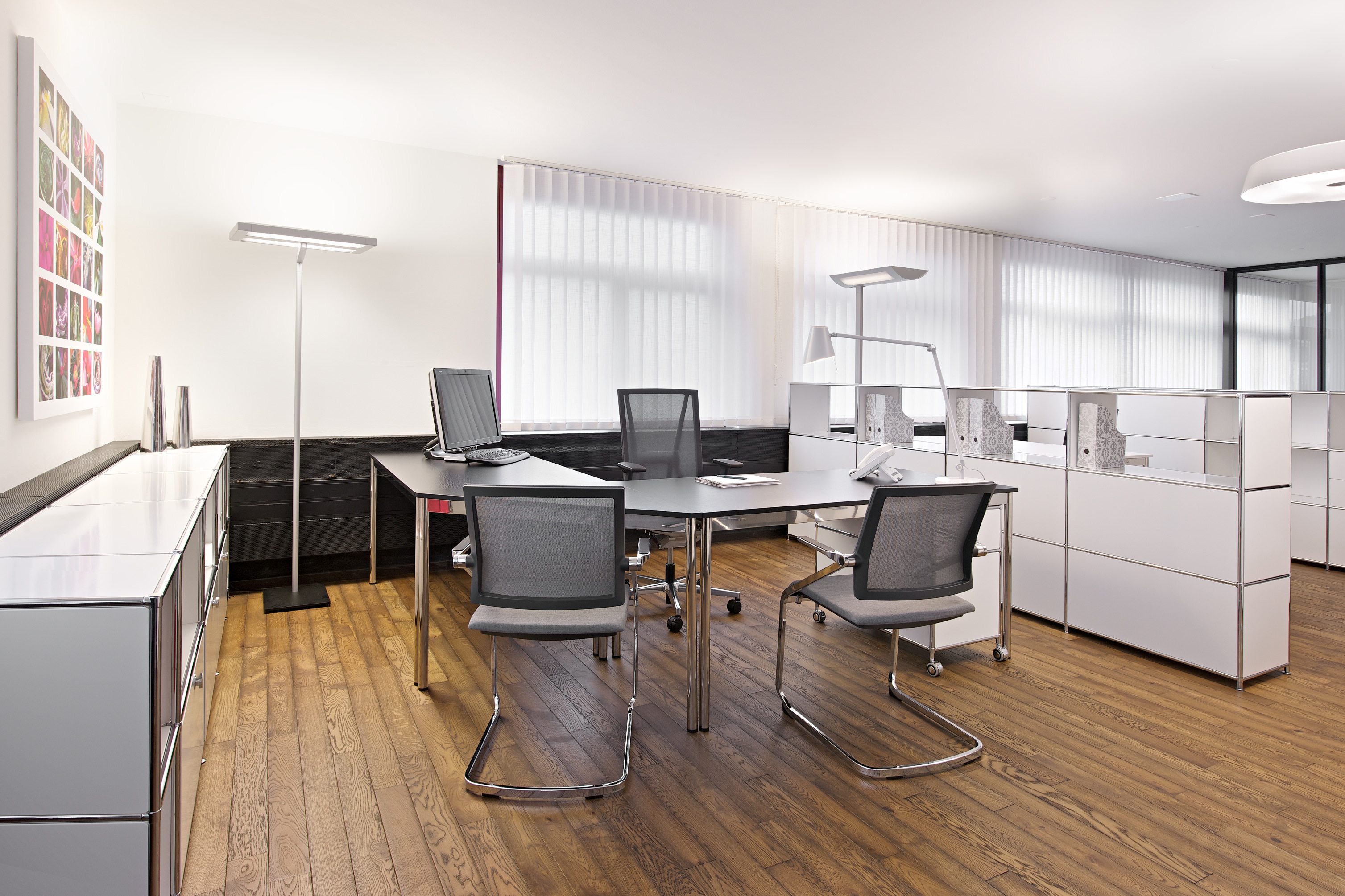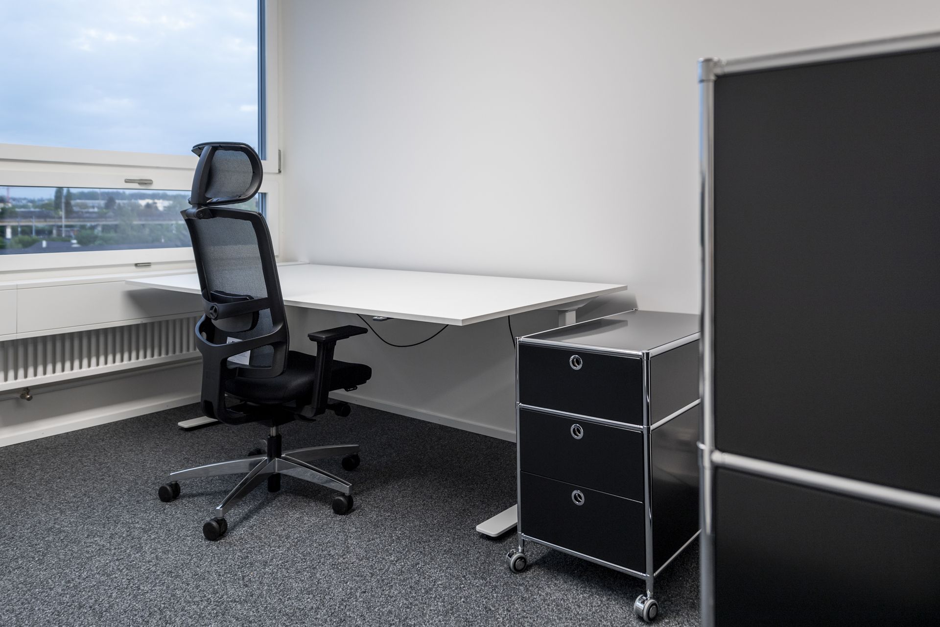 The project comprised twelve ergonomic workstations with height-adjustable desks, office containers and sideboards. Several dividing shelves provide structure and a clear room layout. The furnishings were complemented by a modern meeting room with a sideboard, a spacious table and chairs, an inviting dining area and two stylish lounge areas with a sofa and coffee table.