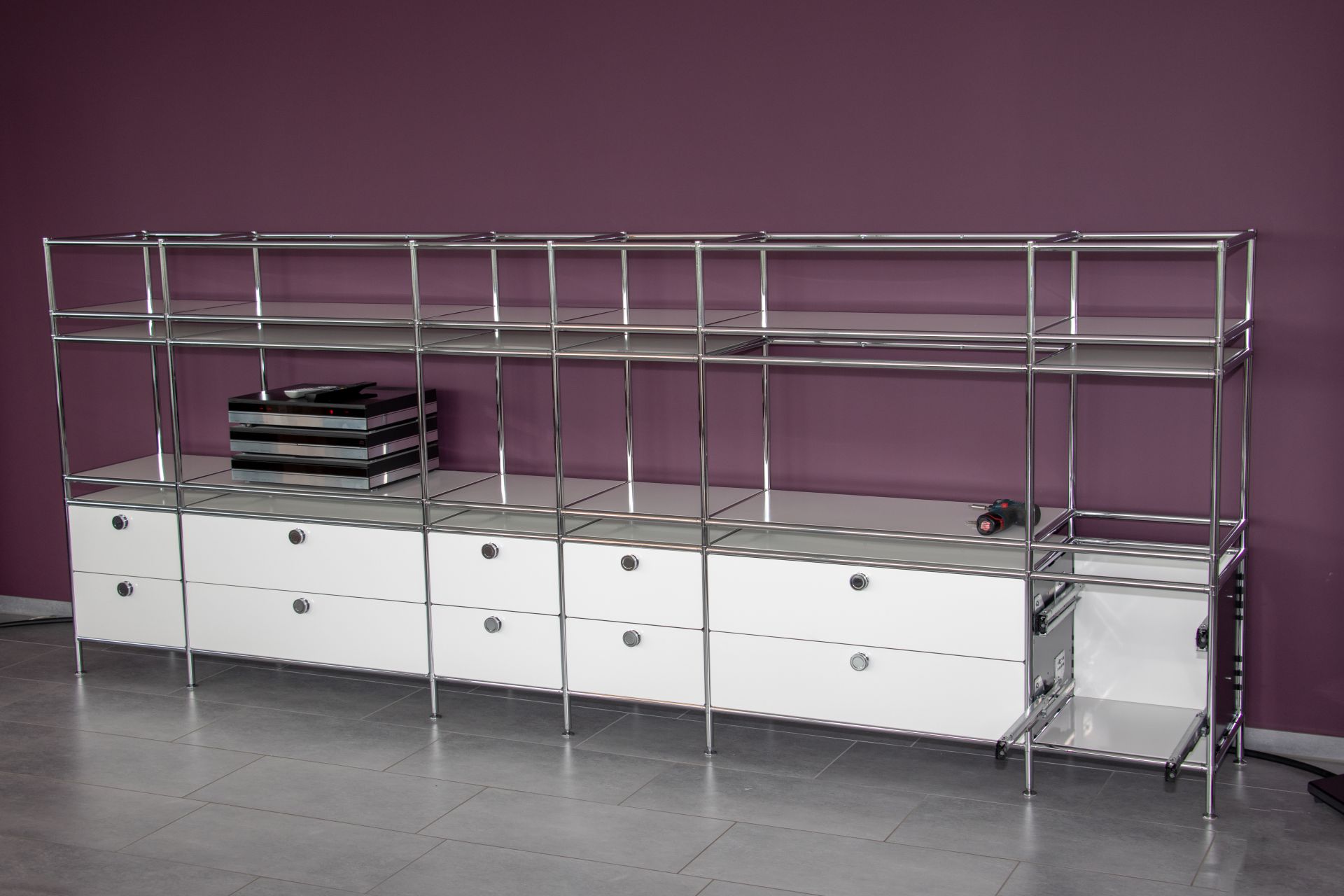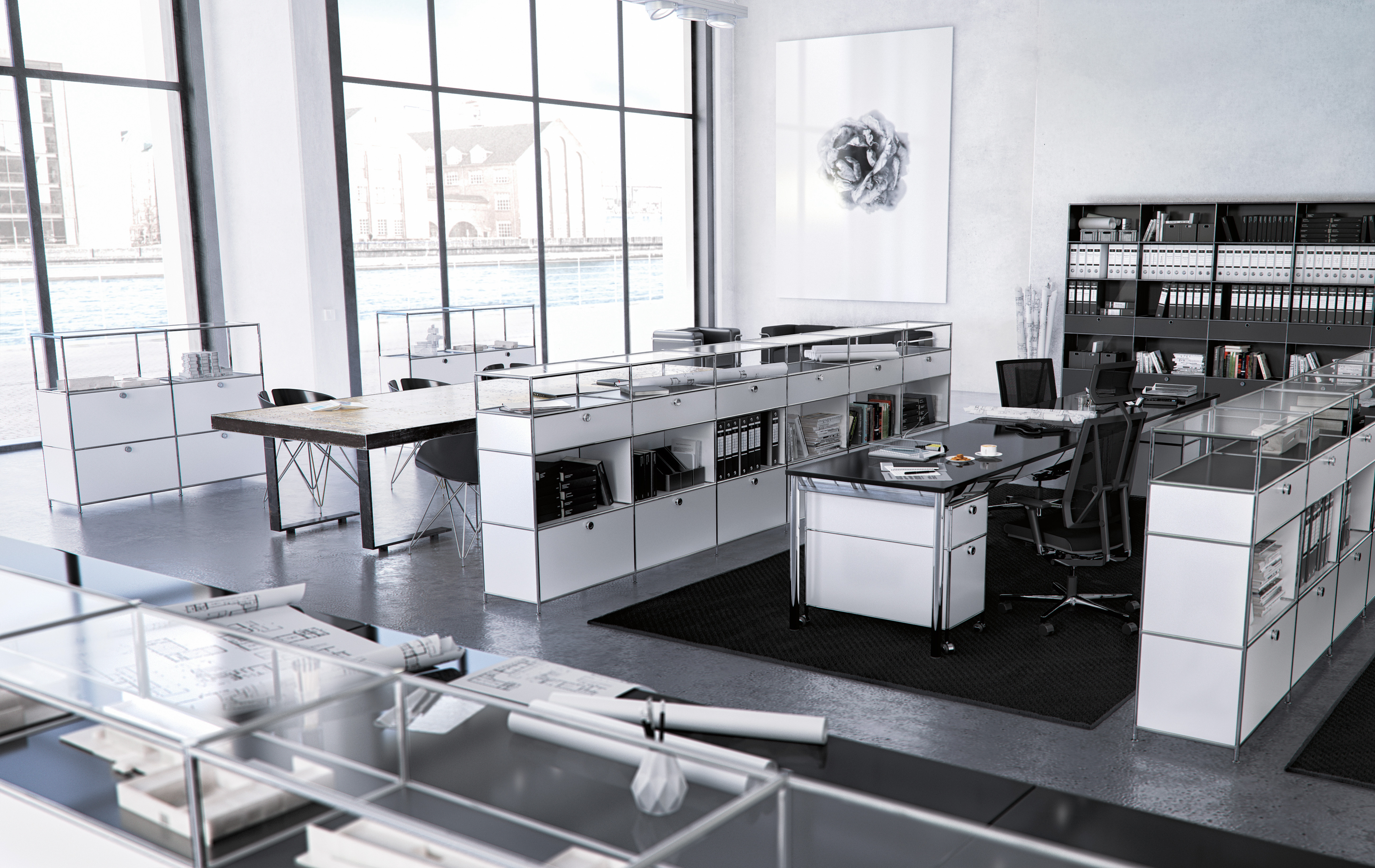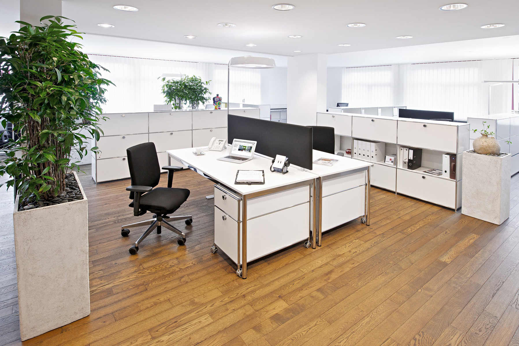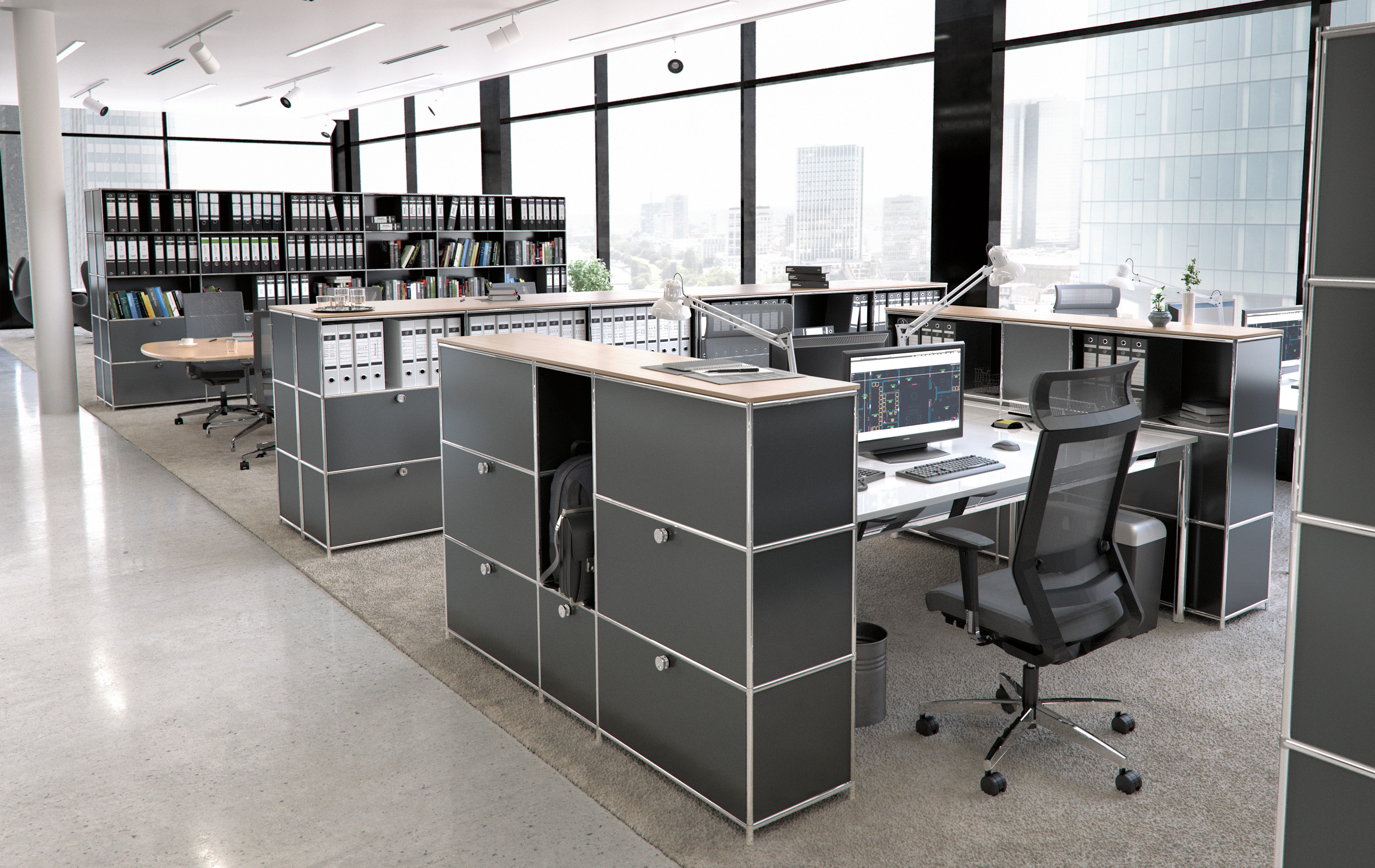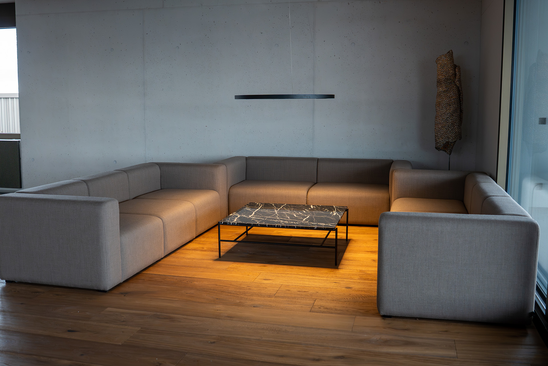 The project comprised twelve ergonomic workstations with height-adjustable desks, office containers and sideboards. Several dividing shelves provide structure and a clear room layout. The furnishings were complemented by a modern meeting room with a sideboard, a spacious table and chairs, an inviting dining area and two stylish lounge areas with a sofa and coffee table.