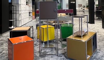 Furniture & modules can be customised with handles, castors, drawers, flaps and doors. Components can be flexibly extended and moved even after assembly. Levelling feet as standard.