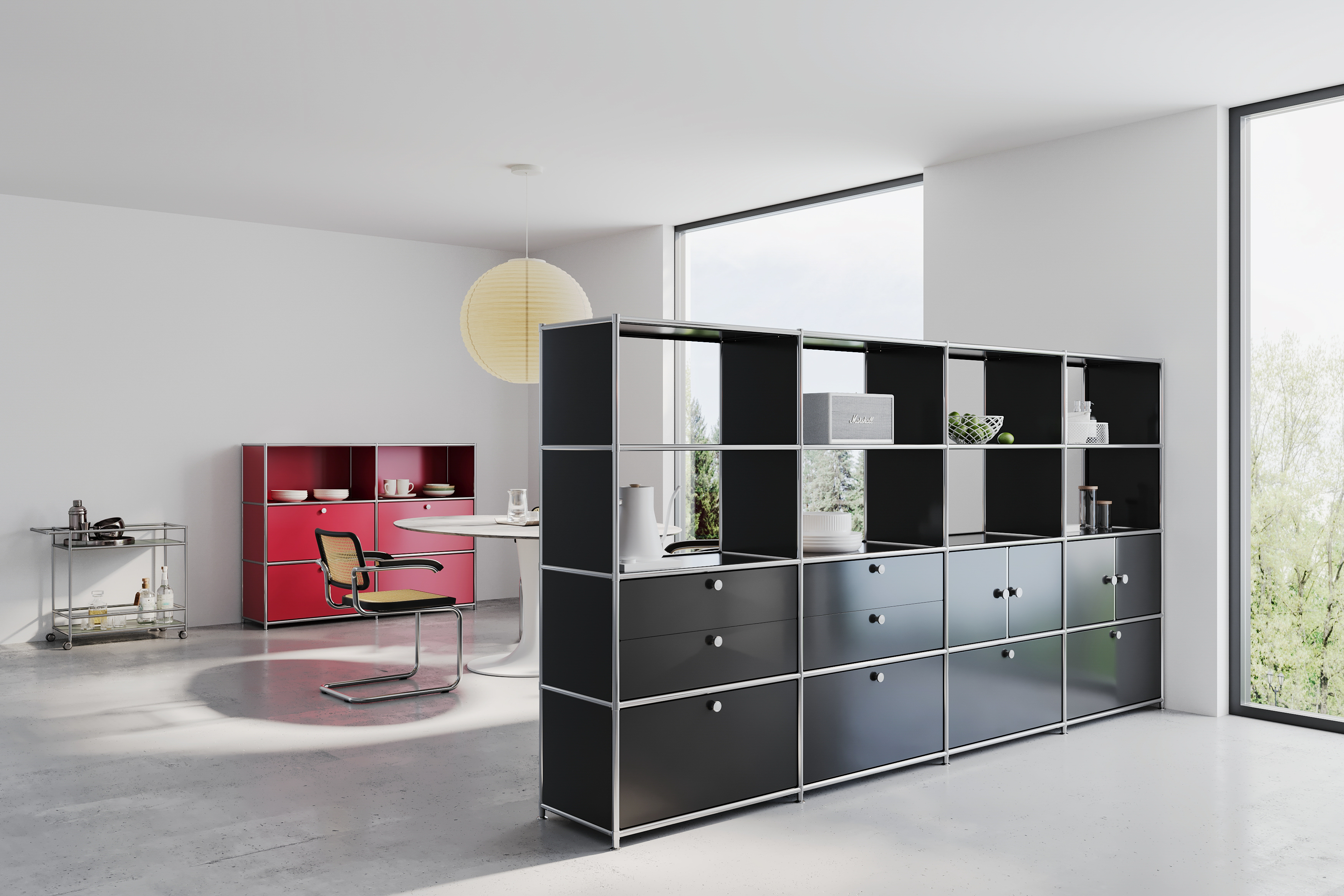 Our dining room furniture combines timeless design, well-thought-out functionality and modular flexibility – perfectly suited to a wide range of dining areas. The shelving systems integrate harmoniously into any interior concept and offer smart storage solutions for tableware, books or decorative items. In smaller apartments, a shelving unit can also serve as an elegant room divider between the dining and living areas.
