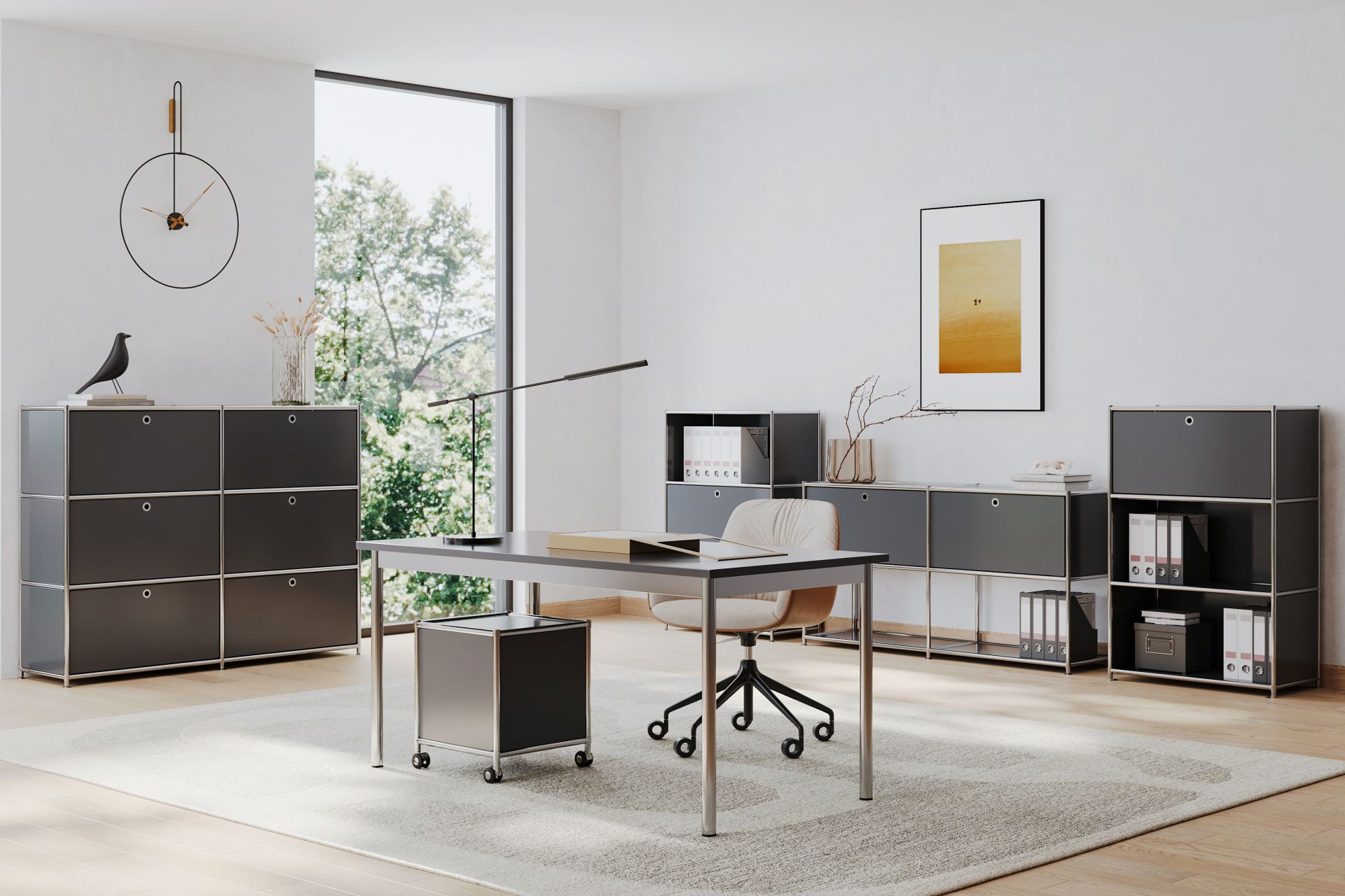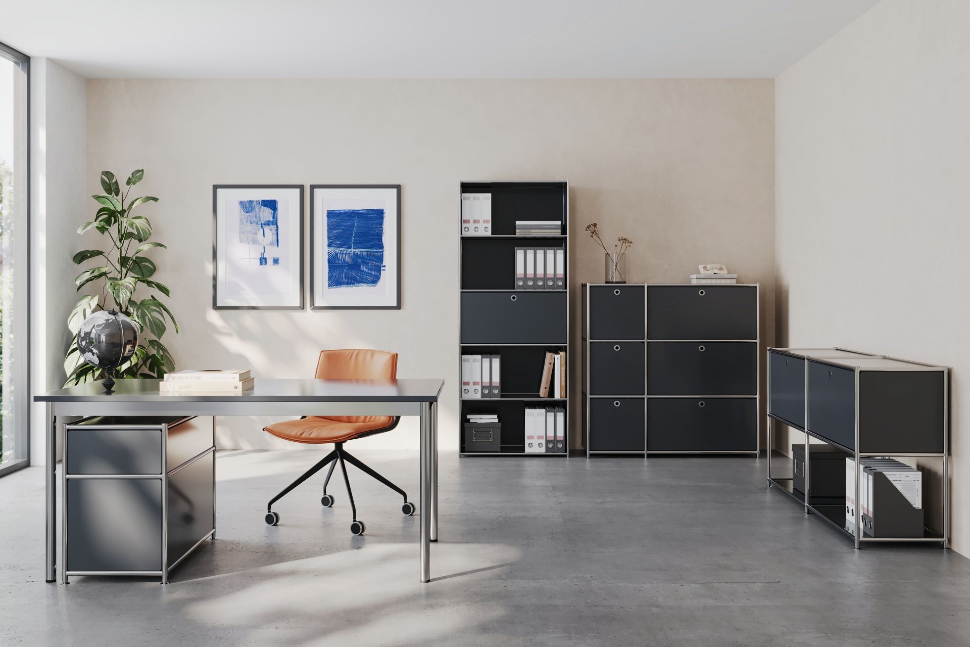 Clear shapes, durable materials and an intelligent modular system make SYSTEM4 the ideal solution for modern open-plan office and home office requirements. From compact desk modules to spacious shelving units – each element can be individually configured and fits harmoniously into your room concept. Choose from a range of colours and shapes that will enhance your working environment not only functionally but also aesthetically.