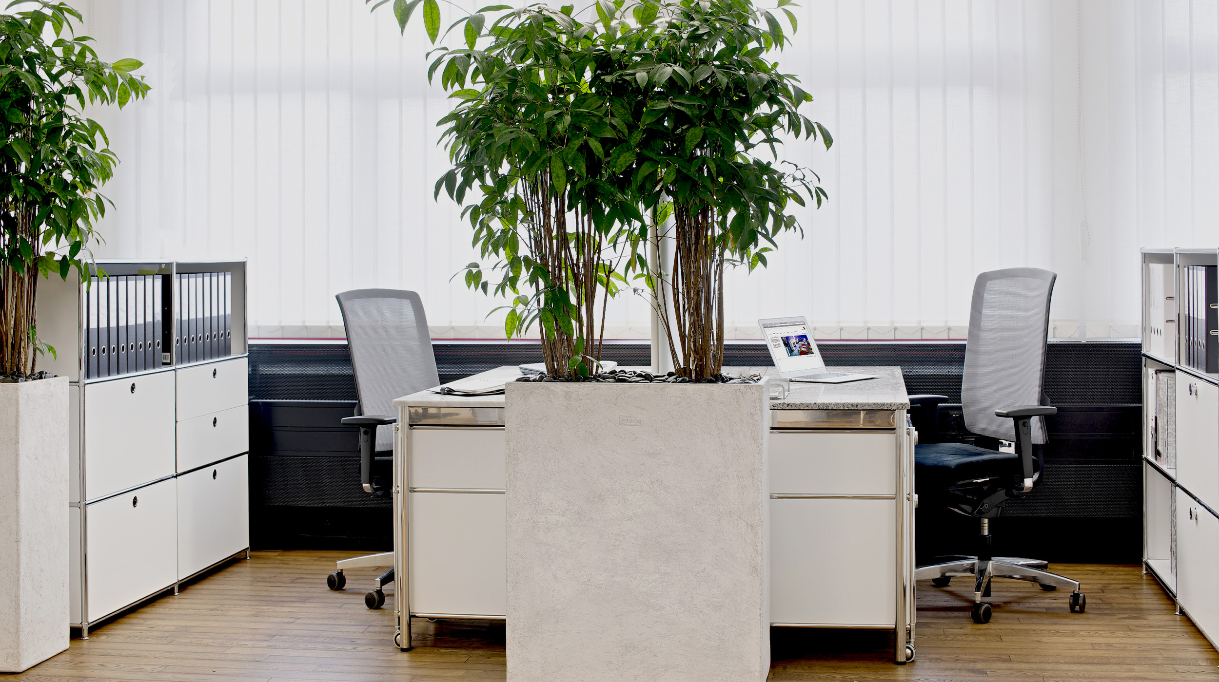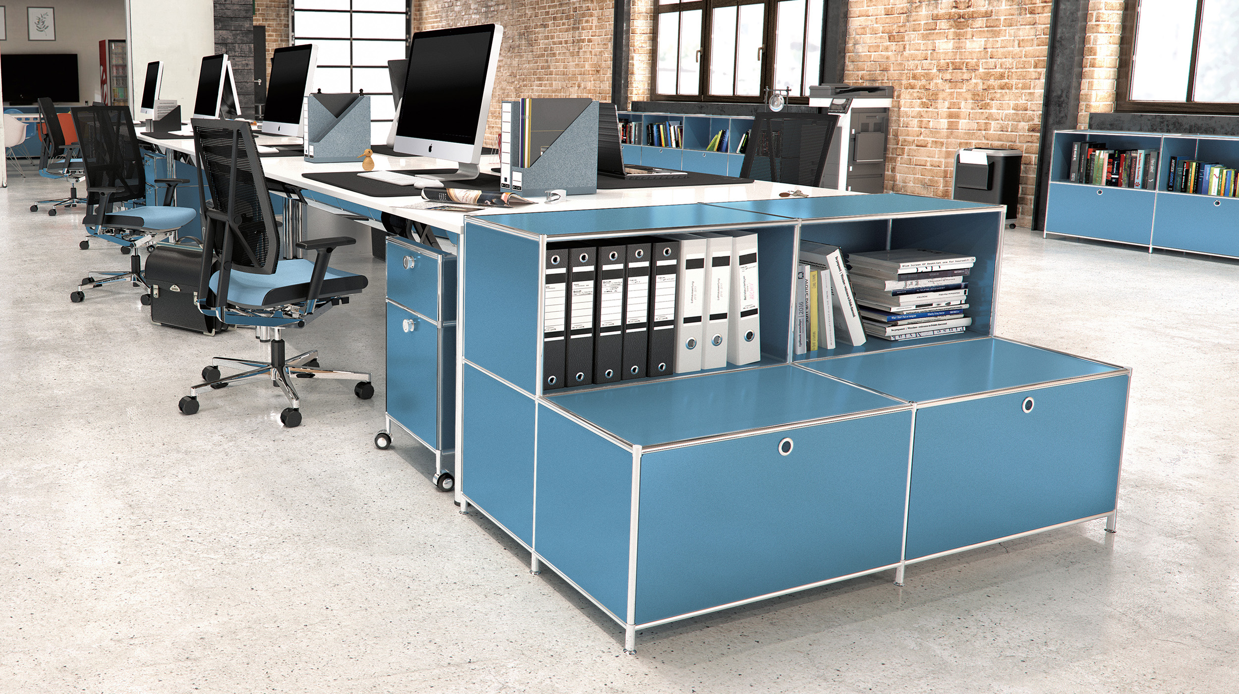 Für 20 Büroarbeitsplätze entstand eine optimale Arbeitsumgebung, die Übersicht, Funktionalität und effiziente Arbeitsprozesse unterstützt.