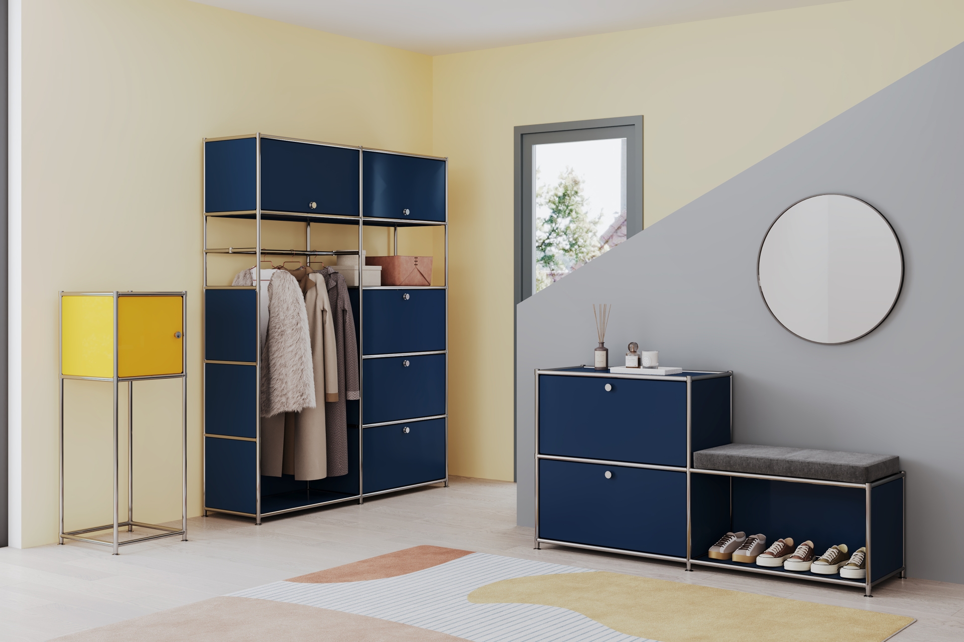Der Flur ist der erste Raum, den Sie betreten, und kann schnell zu einem Ort des Wohlbefindens werden. Mit praktischen Aufbewahrungslösungen für Mäntel und Schuhe sowie passenden Sitzgelegenheiten. Mit Regalen schaffen Sie Ordnung und sorgen gleichzeitig für eine warme Atmosphäre. Mit unseren modularen Designermöbeln können Sie Ihren Eingangsbereich individuell an Ihre Bedürfnisse anpassen – und ihn in einen funktionalen und stilvollen Raum verwandeln, in dem Sie sich sofort wie zu Hause fühlen.