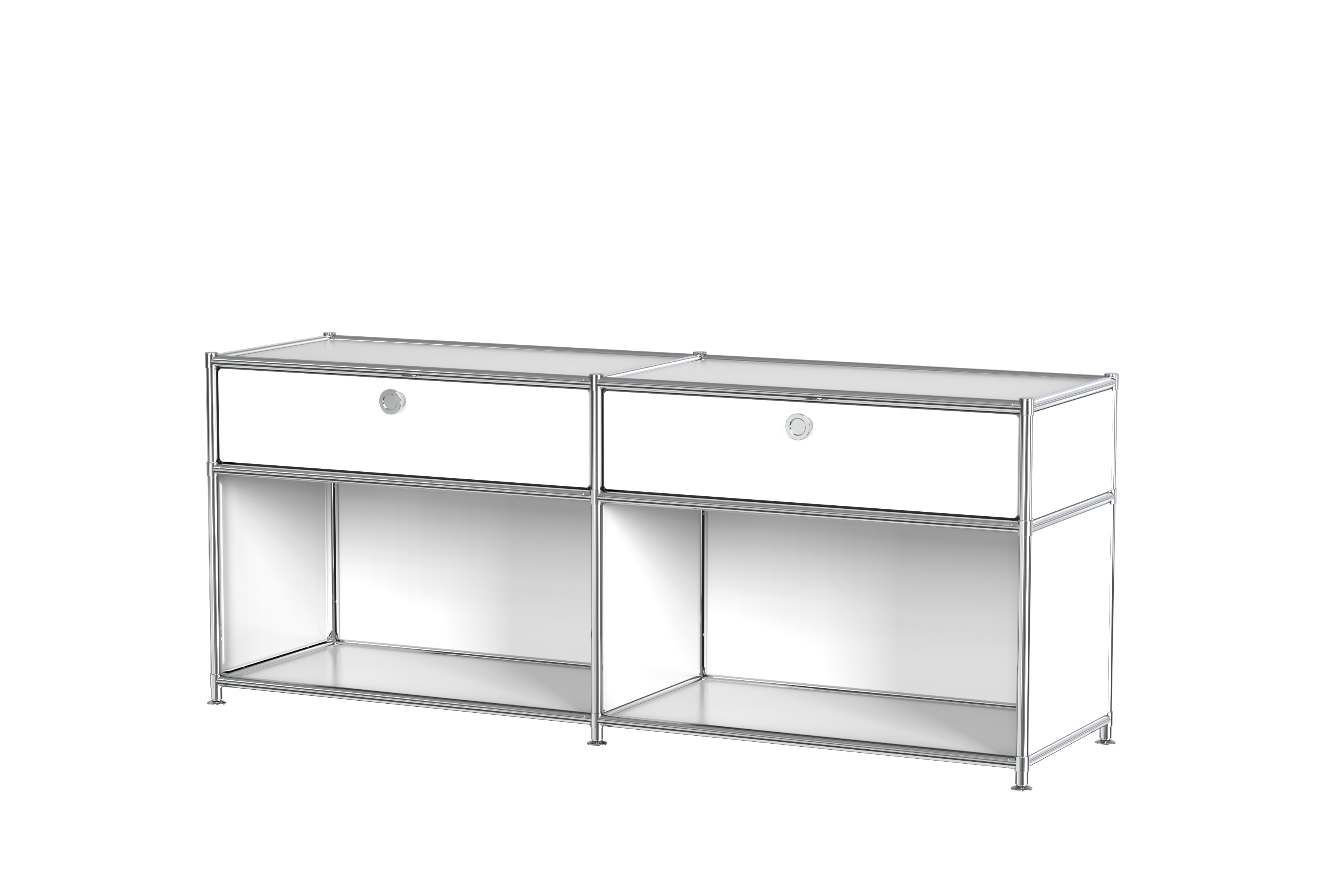 Sideboard mit zwei Schubladen, Frontgriffe verchromt und zwei offene Ablagen